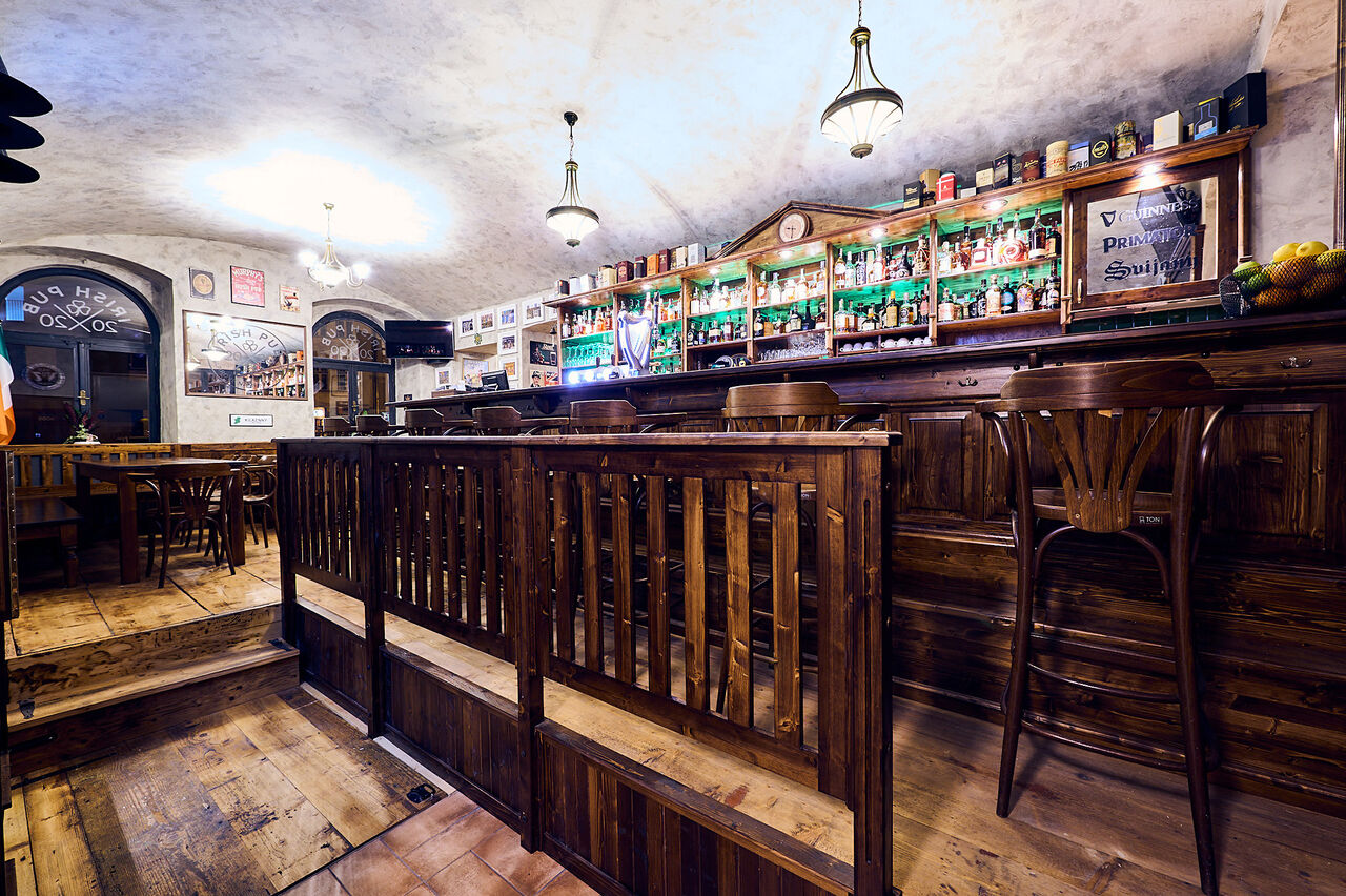 Nabízíme nově zrekonstruovaný prostor Irish Pubu, který svým stylovým vybavením připomíná pravé irské hospůdky. U nás si můžete pochutnat na pivních speciálech jak z Irska( Guinness a O'hara's ), tak z pivovaru Svijany a Primátor. Na čepu je i irský cider Magners', tak i nealkoholické ochucené pivo z pivovaru Svijany ( černý rybíz s limetkou ) V letních měsících lze na terase pozorovat noční atmosféru a posedět klidně až do pozdní noci. V prostorách našeho baru Irish Pub 2020 také nabízíme jedinečnou možnost ochutnat 80 druhů whiskey z 8 zemí a 80 druhů rumů z 20 zemí. V baru jsou také 3 televize na kterých lze sledovat sport na různých tv stanicích.